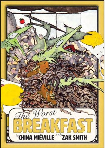 A girl helps her sister remember the worst breakfast ever. Miéville's prose, which sonsists entirely of rhyming dialogue ("It shoukc be creamy, made of oats, not gunk scraped off the hulls of boats.") and a proliferating list of real and imagined unpalatable foods, emphasizes that this is a book to be read aloud - and is sure to be accompanied by a cacophony of ews and grosses! from delighted children.